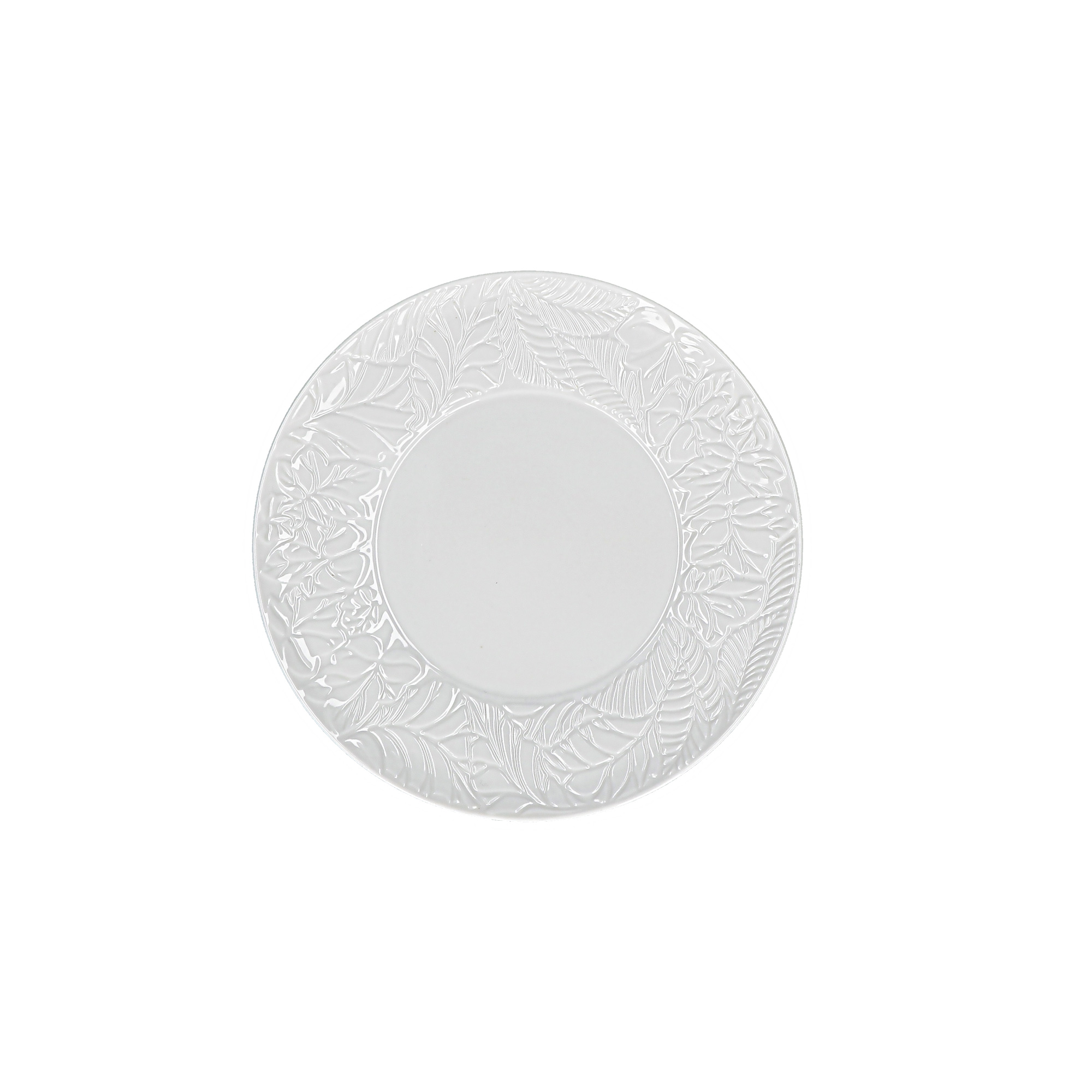 Un pregiato decoro a rilievo che riproduce foglie di felce, edera, faggio e altri elementi naturali della pittoresca campagna toscana, conquista la tavola rendendo indimenticabile ogni momento conviviale.