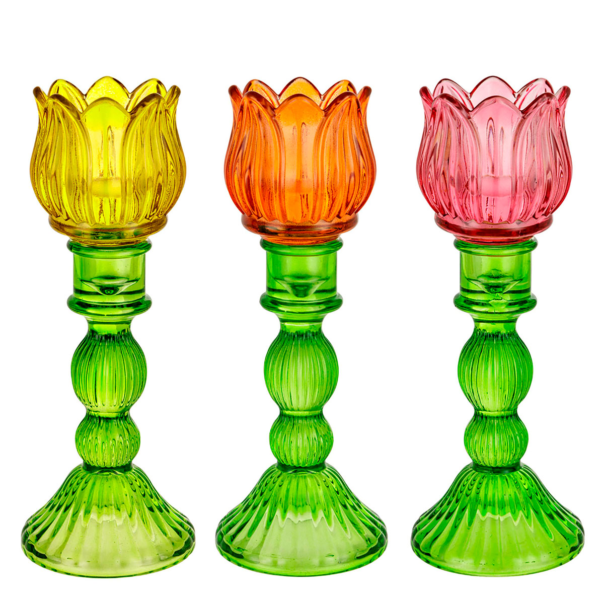 FLOWER CANDELABRO VETRO FIORE H.22 3 colori assort.