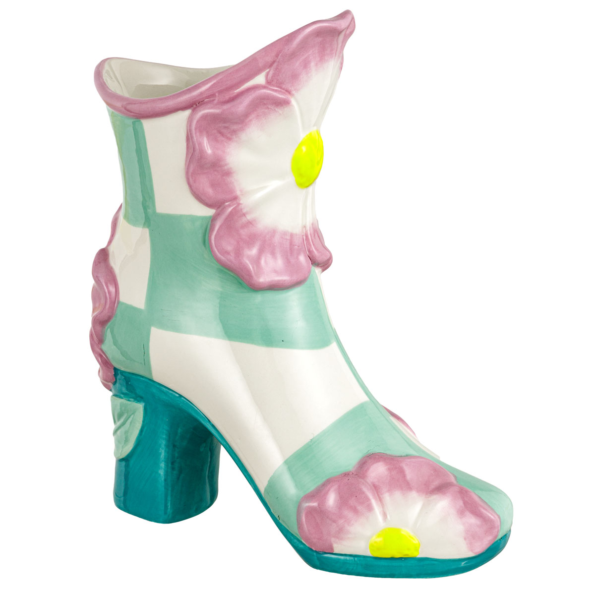 FLOWER VASO STIVALE CELESTE FIORI ROSA CERAMICA